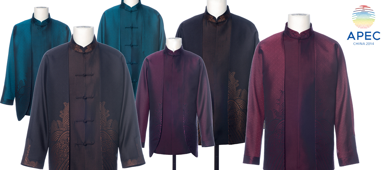 山水、花卉、云纹;丝绸、锦缎;对襟、开襟……60份设计稿脱颖而出,传统的中国元素高频率出现。而从这一刻开始,APEC领导人特色中式服装进入了新一轮深化设计阶段。